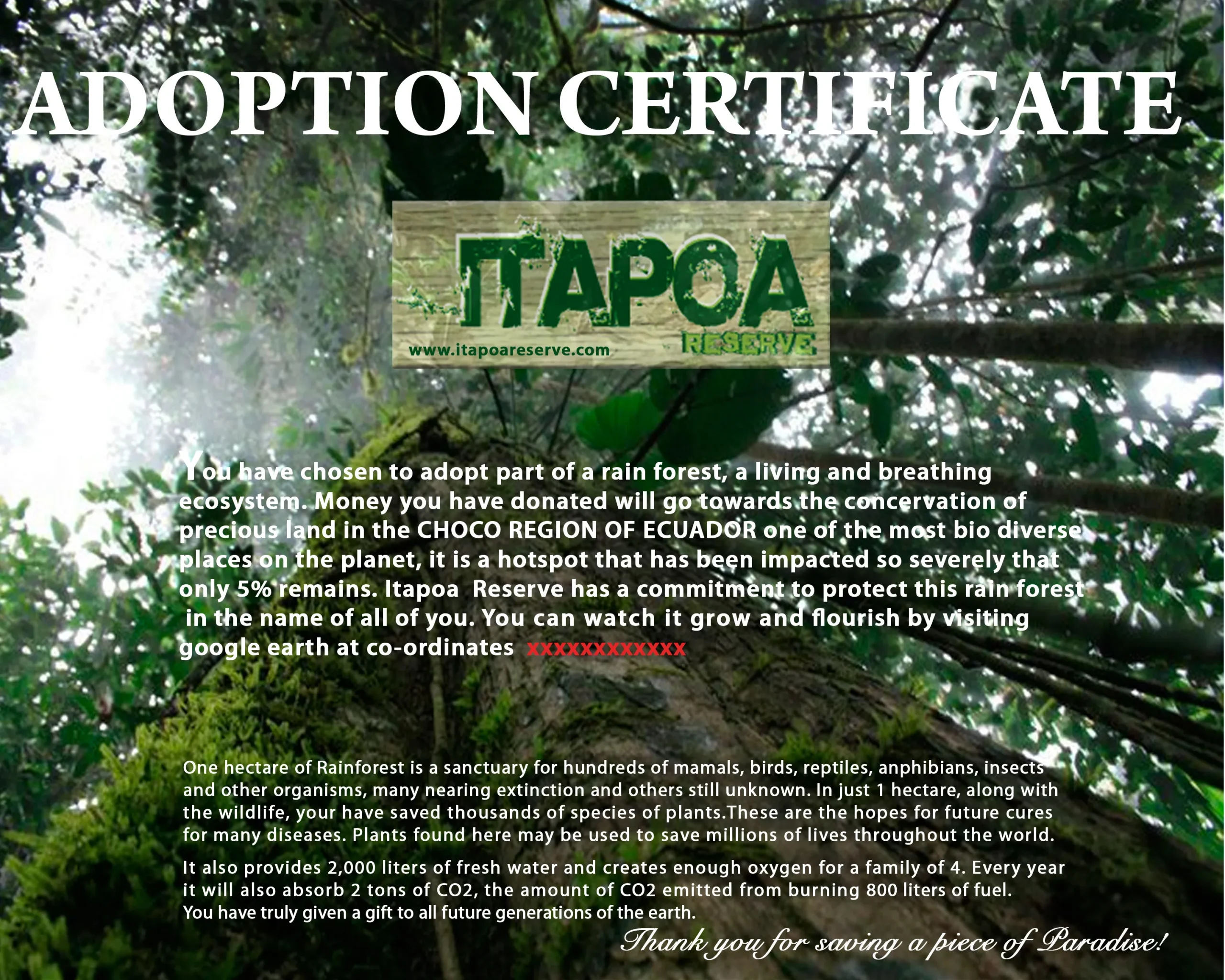 You can visit your piece of the rainforest by going to google earth and putting in XXX as the location coordinates. We also endourage you to spread the word by emailing is page to all your friends HERE and by adopting a piece of Itapoa in a friend or famly member’s name as a way to honor them in your lives.